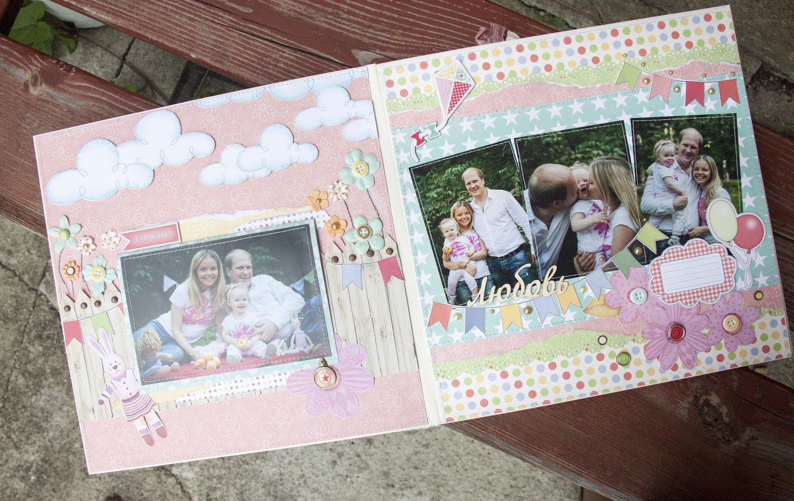 Покажу несколько разворотов. Фотографировала на ходу, буквально перед тем как отдать альбом, поэтому заранее прошу прощения за качество фотографий)